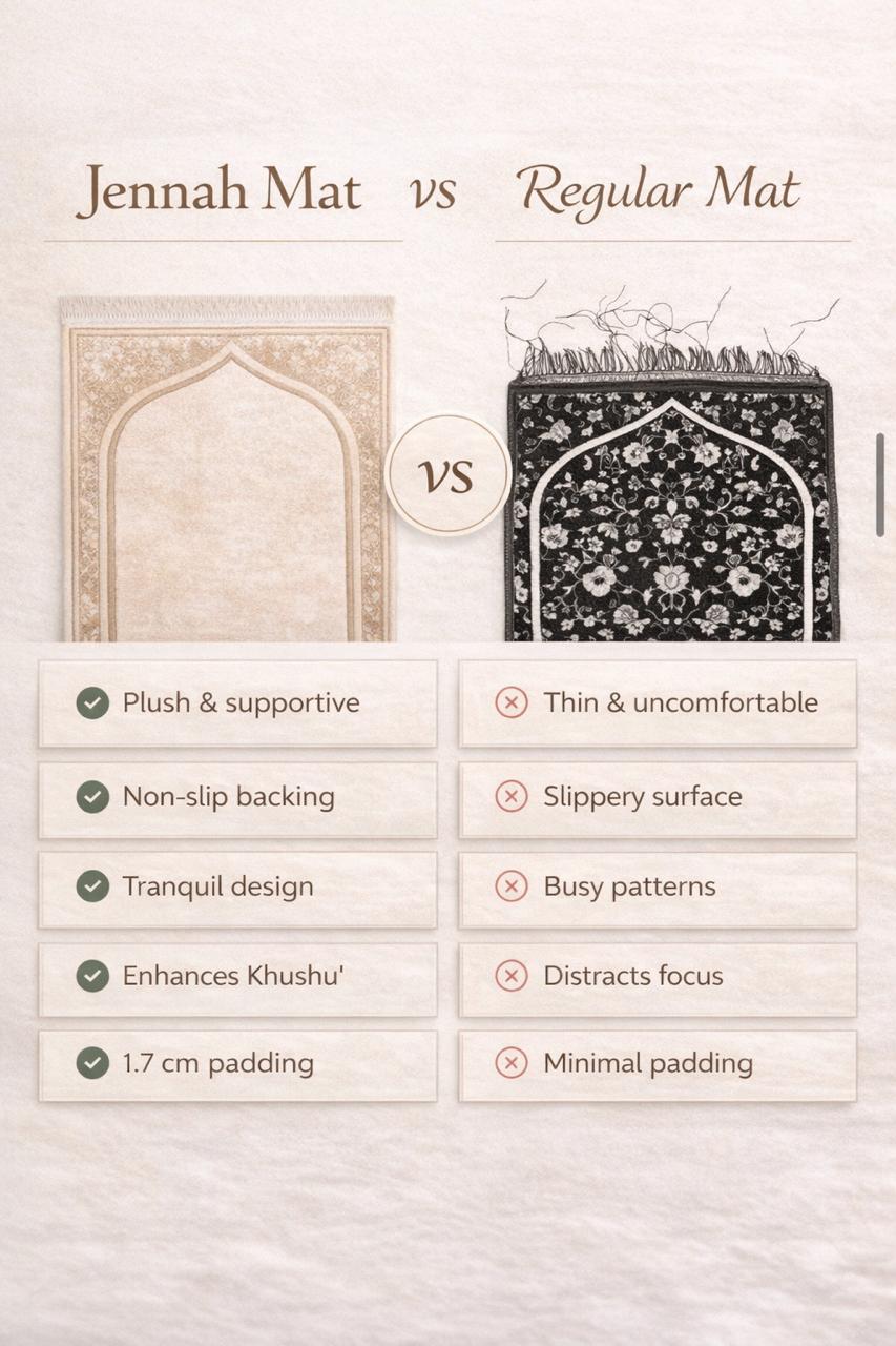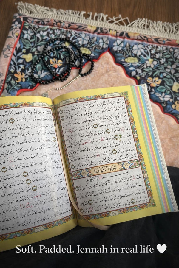 Experience deeper comfort in sujood with our 1.7 cm padded prayer mats